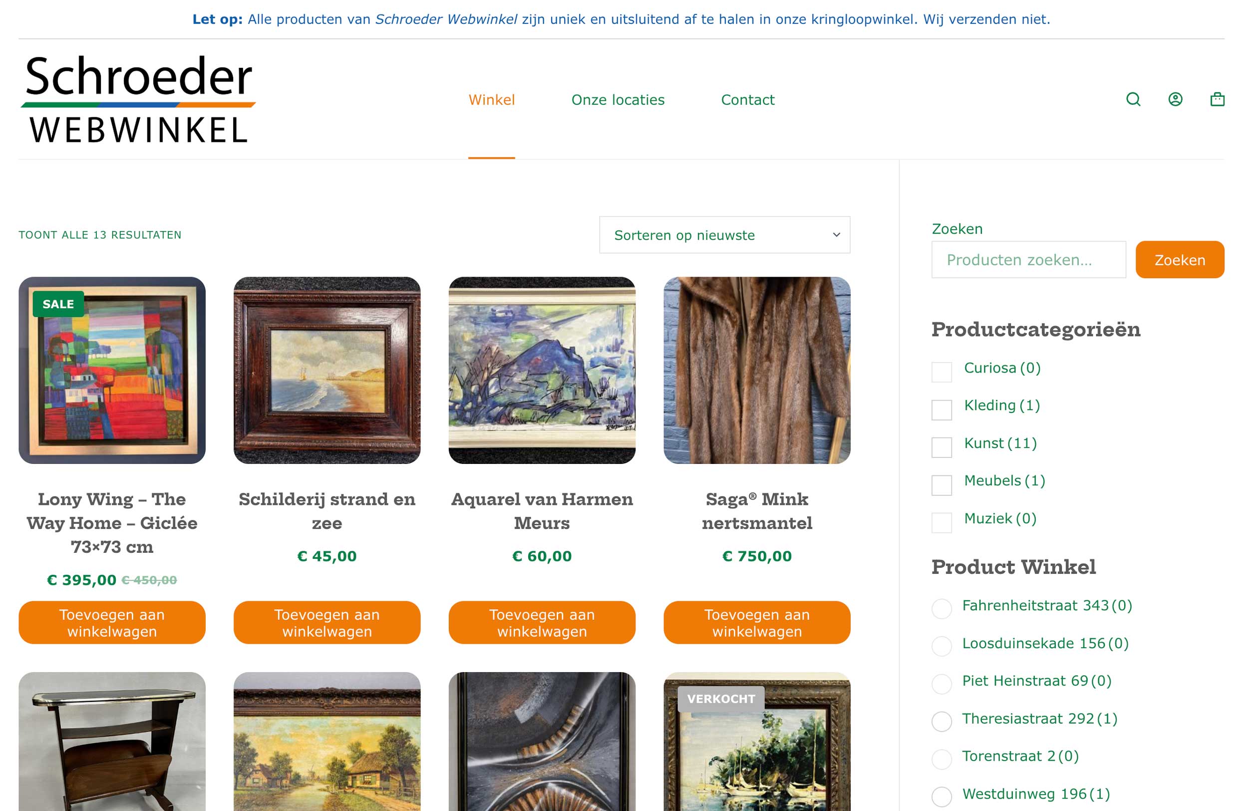 Vanaf vandaag is de webwinkel van Schroeder Kringloop geopend! Hier vind je een zorgvuldig geselecteerde collectie kringloopitems uit het hogere segment: unieke pareltjes met karakter, kwaliteit en een verhaal.